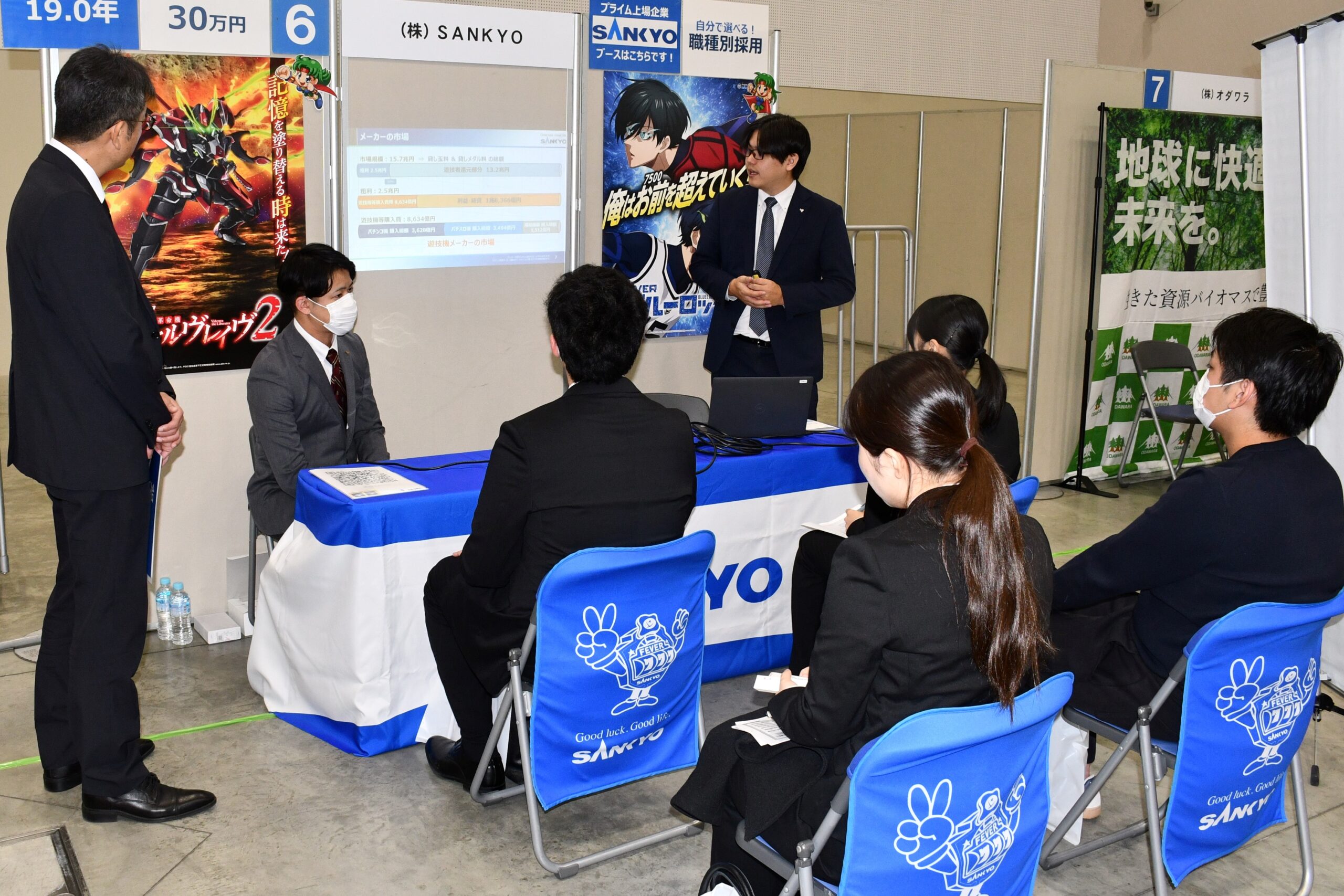 各ブースでは30歳以下の若手社員らが業務内容や福利厚生、社内の雰囲気などを説明。学生は関心のあるブースを巡り、担当者の話に耳を傾けた。