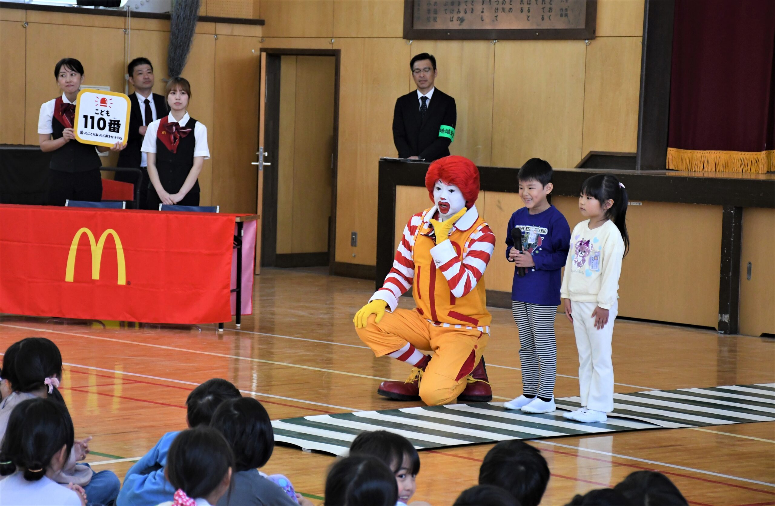 新生活を迎えた児童に安全に登下校してもらおうと、日本マクドナルド(東京都)と県警は17日、前橋市の元総社小(目黒徹校長)で安全教室を開いた。1、2年生76人が同社マスコットのドナルド・マクドナルドと一緒に自分を守ることを考えた。